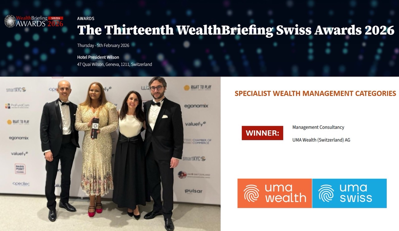 Our leading wealth management firm UMA Wealth (Switzerland) AG is proud to announce that it has been selected as the winner in thefollowing category at the WealthBriefing Swiss Awards 2026.
